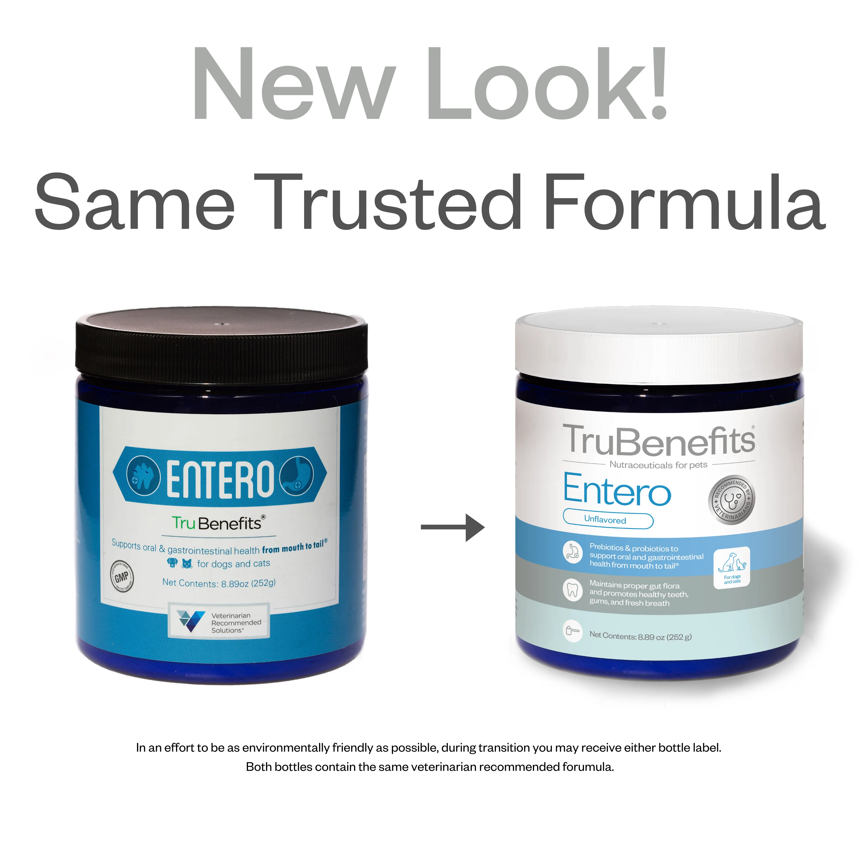 The gastrointestinal tract is the largest immune organ in the body, beginning in the mouth and ending with the large bowel. TruBenefits® Entero is formulated to continuously support your pet’s oral and intestinal health from mouth to tail.